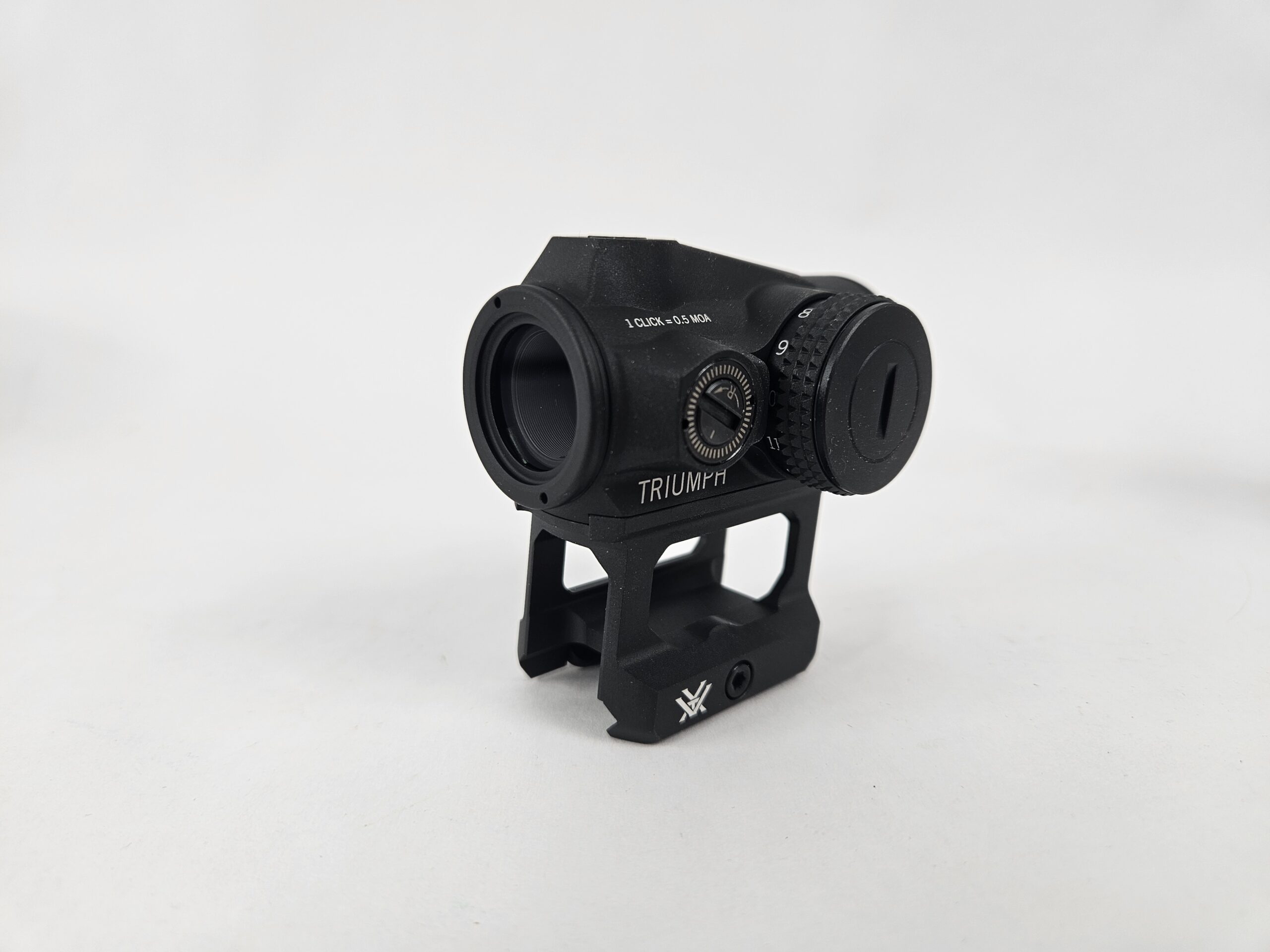 Vortex TRIUMPH RED DOT to bardzo wytrzymały kolimator który możemy zamontować na szynę picatinny, w zestawie jest niski i wysoki montaż. Zasilany standardową baterią CR2032 której wymiana jest banalnie prosta. W zestawie z kolimatorem dodawane są gumowe zaślepki które pozwalają zabezpieczyć szkła na czas gdy nie ma potrzeby korzystania z celownika.